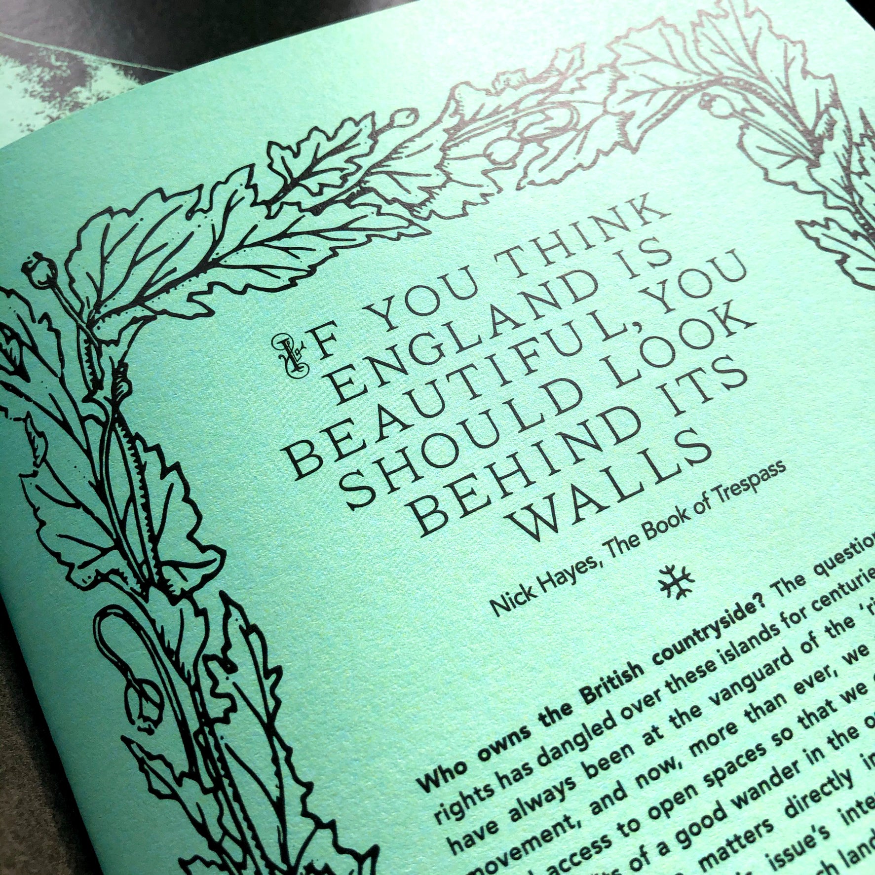 The question of land rights, and who owns the British countryside, has dangled over these islands for centuries. Nick Hayes addresses free access to open spaces directly in this issue’s interview, while Zakia Sewell speaks of discovering a different kind of Britain, the Albion that she has navigated on her excellent BBC radio shows.